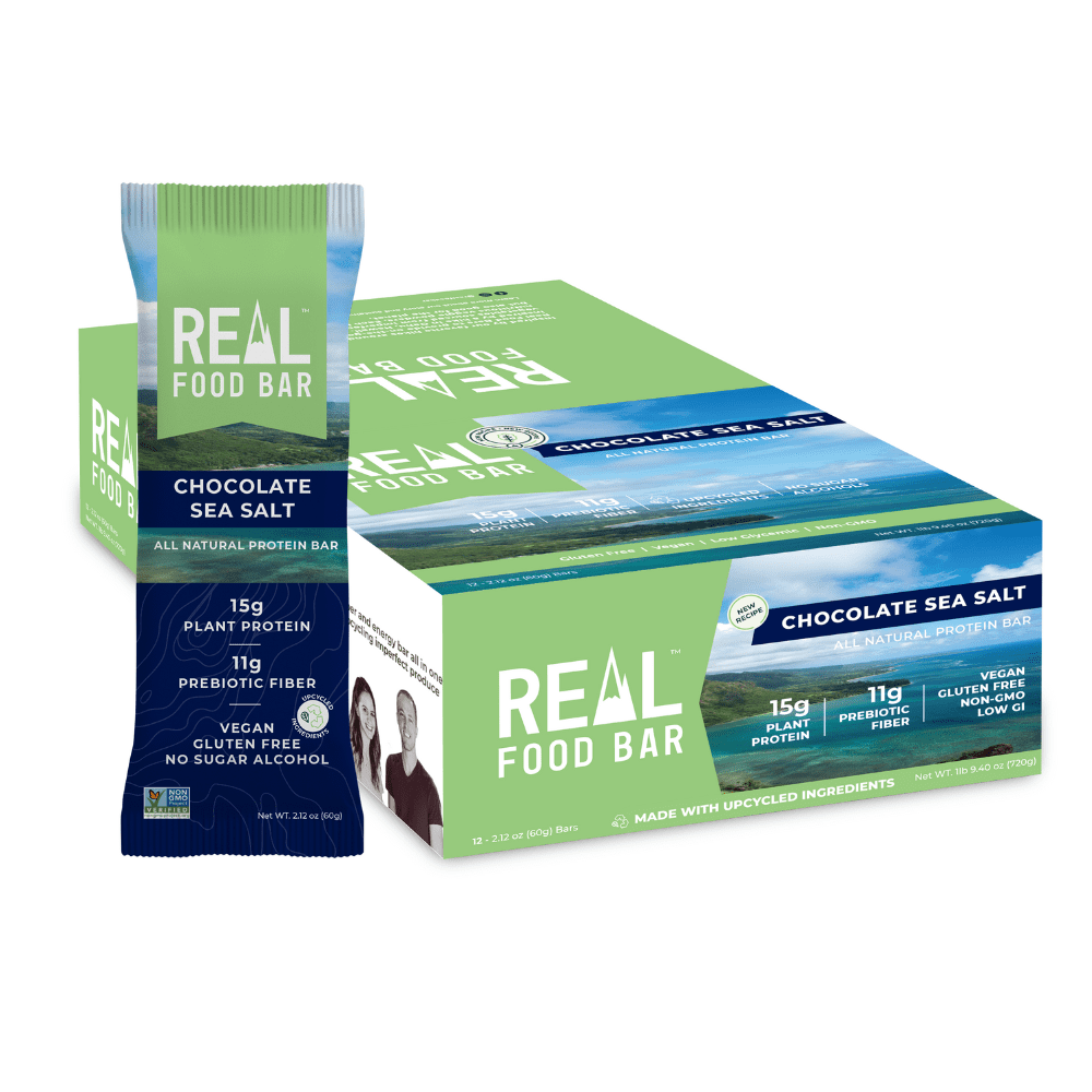 Real Food Bar Plant Protein Bar Chocolate Sea Salt 15g Protein 7g Natural Sugar 2 12 Oz 12 Bars Walmart Com